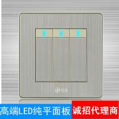 极浦新款香槟色三开双控 | 轻点式带LED开关不锈钢拉丝墙壁开关面板