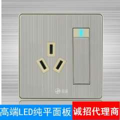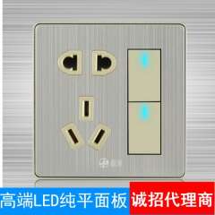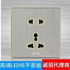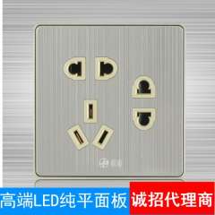 厂家直销 | 极浦86尊享LED墙壁开关插座拉丝面板7眼二二三七孔插座