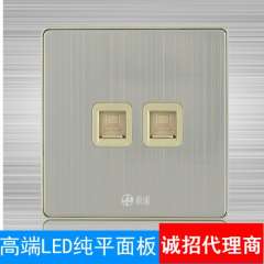 生产厂家批发极浦86型墙壁开关电源银色拉丝面板一位电话插座精品