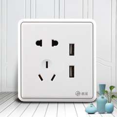 极浦USB开关插座白色86型暗装五孔插座带usb充电墙壁电源插座面板