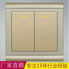 代理加盟 | 金色两位双控开关不锈钢拉丝墙壁开关插座面板厂家精品