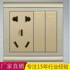 家装工程精品安全性2开双控5孔插座 | 极浦优质香槟金86型墙壁面板