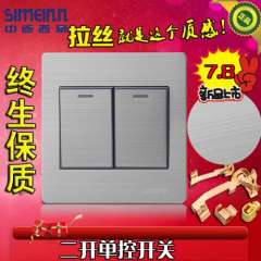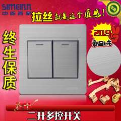 正品86型暗装 | 银灰色金属拉丝 | 二开双控/联 | 2开墙壁开关面板批发