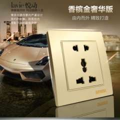 正品 | 香槟金色 | 多功能五孔 | 英港式5眼 | 86型开关插座面板厂家批发