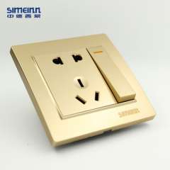 酒店精装 | 土豪金色 | 三位单控/联 | 86型3开墙壁开关插座面板厂家
