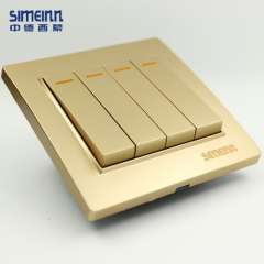 土豪金色 | 四位单控/联 | 86型4开浴室客厅墙壁开关插座面板厂家
