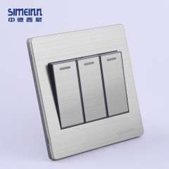 中德西蒙86型暗装 | 银灰色金属拉丝 | 三开单控/联 | 3开墙壁开关面板