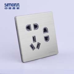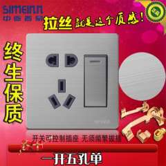 银灰色不锈钢拉丝 | 二三插一开五孔单控 | 带开关插座面板 | 厂家直销