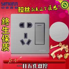 银灰色不锈钢拉丝 | 二三插一开五孔双控 | 带开关插座面板 | 厂家直销