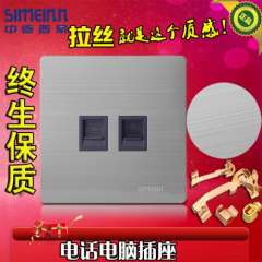 精装拉丝银电话电脑有线带网络网口插座 | 高品质墙壁开关面板批发