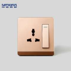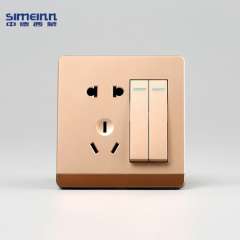 墙壁开关代理 | 墙壁开关厂家批发香槟金一开双控带五孔插座开关