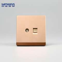 西蒙86型二位闭路加网线网口插座 | 香槟金色电视电脑面板 | 量大从优