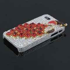 IPHONE 4G 4S 高档手机壳 | 红孔雀 | 闪钻 | 白钻底