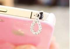 带钻iphone耳机孔防尘塞\通用型手机耳机孔防尘塞-水滴形 | 颜色随机