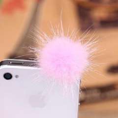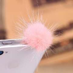 貂毛小毛球iphone耳机孔防尘塞\通用型手机耳机孔防尘塞-粉色