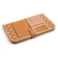高档礼盒装折叠式多功能车载CD夹\遮阳板收纳袋-驼色