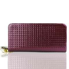 时尚光亮格仔真皮长款拉链钱包 | 手拿包 | 紫色