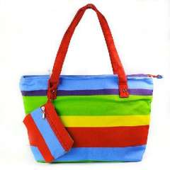时尚彩虹条纹帆布包 | 拉链包 | 单肩包 | 学生包 | 附小钱袋
