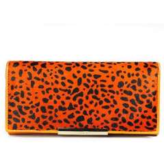 时尚橙色小梅印花马毛拼接真皮长款钱包 | 手拿包