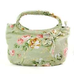 清新玫瑰蝴蝶结棉帆布手提包
