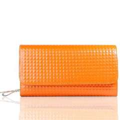 时尚光亮格仔真皮长款钱包 | 手拿包 | 单肩包 | 橙色