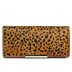 时尚棕色小豹纹印花马毛拼接真皮长款钱包 | 手拿包