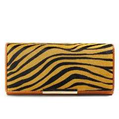 时尚棕色斑马纹印花马毛拼接真皮长款钱包 | 手拿包
