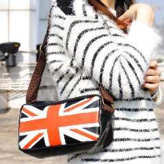 新款欧美压印米字旗简约休闲单肩包斜挎女包包学生可爱小包 | 黑色