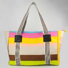 时尚撞色条纹棉帆布手提单肩包
