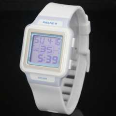 方形男女皆宜PVC透明电子手表 | 表带可替换 | 白色