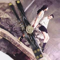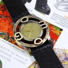 复古新款牛皮手表 | 中性大数字 | 韩版男女真皮带石英手表 | 黑色