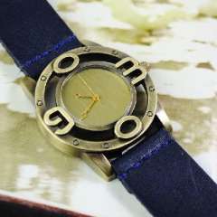 复古新款牛皮手表 | 中性大数字 | 韩版男女真皮带石英手表 | 蓝色
