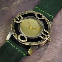 复古新款牛皮手表 | 中性大数字 | 韩版男女真皮带石英手表 | 绿色