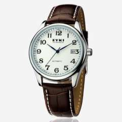 男士圆盘带日历不锈钢机械手表 | 银色