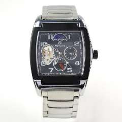 男士六针方形不锈钢机械手表 | 银色