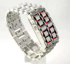 熔岩LED手表 | 男款 | 银带红灯