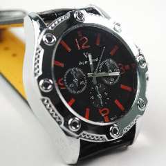 新款男士石英外贸皮带手表 | 黑红色