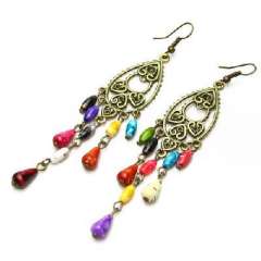 仿古时尚 | 镀铜合金 | 流苏彩珠耳环 | 耳饰