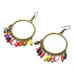 仿古时尚 | 镀铜合金 | 大圆圈彩珠耳环 | 耳饰