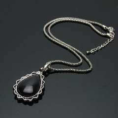 黑色猫眼石水滴项链 | 毛衣链 | 长度可调节