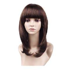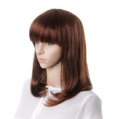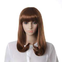 褐棕色化纤齐刘海中长直发40cm