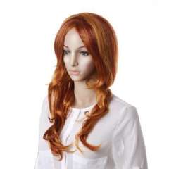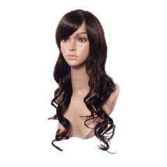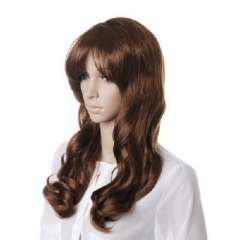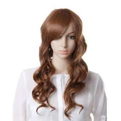 褐棕色化纤斜刘海长卷发70cm