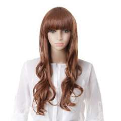 褐棕色化纤齐刘海长卷发70cm