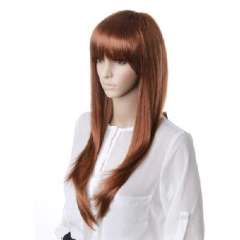 褐棕色化纤齐刘海长直发70cm