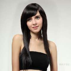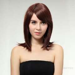 化纤假发 | 斜刘海时尚韩系中长直发 | 蜜红色 | 假发