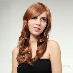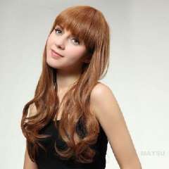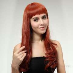 化纤假发 | 齐刘海性感时尚长卷发 | 蜜红色 | 假发