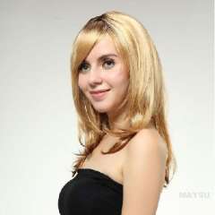 化纤假发 | 斜刘海甜美长卷发 | 金色 | 假发