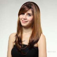 化纤假发 | 斜刘海修脸甜美中长直发 | 板栗色 | 假发