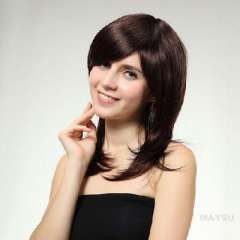 化纤假发 | 斜刘海修脸OL气质短直发 | 板栗色 | 假发