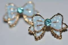 2870 韩国耳饰 | 可爱甜美淑女蝴蝶结镶钻耳钉耳环 5g 天蓝色